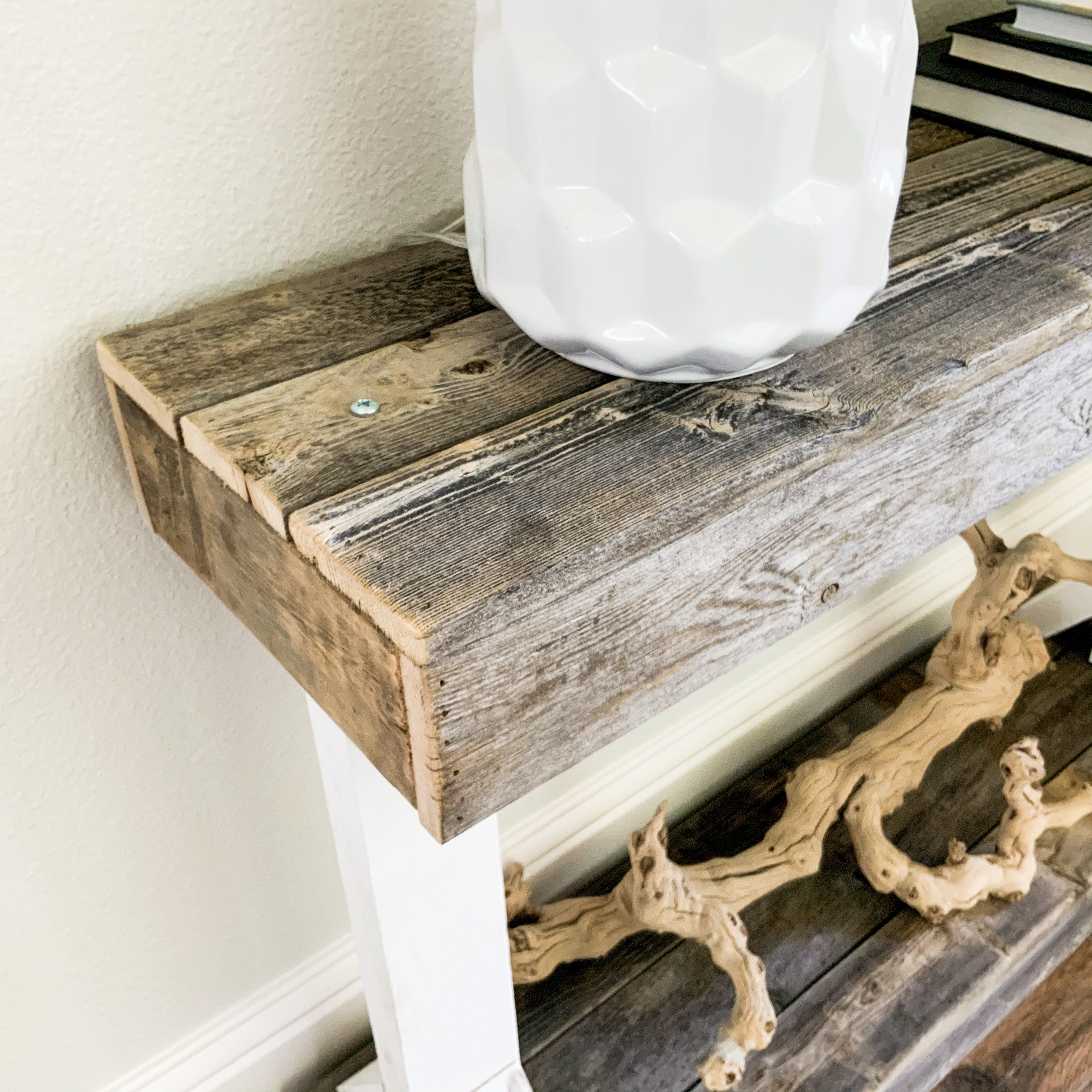 Woven Paths White Rustic Reclaimed Barb Console Table Small Walmart Com