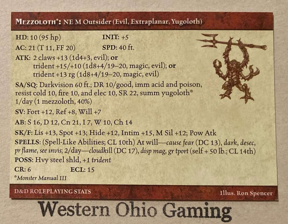 D Amp D Miniatures Mezzoloth 41 Stat Card Only Used Blood War Ebay